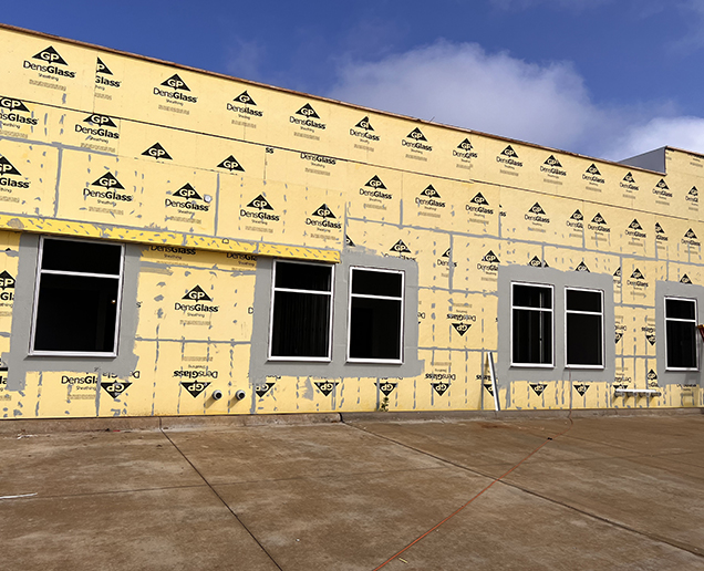 Elastomeric membrane designed to be rolled or sprayed onto exterior above-grade wall assemblies to mitigate air infiltration/exfiltration and water penetration while remaining permeable to the passage of water vapor. It may also be used as a liquid-applied flashing, enabling the contractor to address both the membrane and flashing needs with a single material.